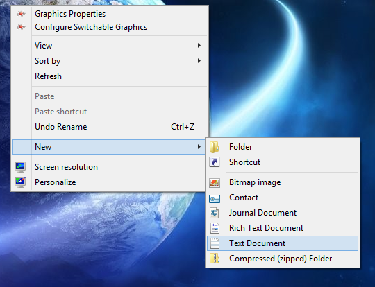 Go to your desktop and right click on an empty space choose New then Text Document.