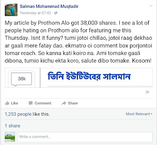 OK, coming back to the main cause of writing this post. Actually recently a Youtuber from Bangladesh become popular (even though in my view he is not that popular yet) he has got 135,203+ subscribers on youtube and 146,533+ on Facebook and his name is Salman Mohammad Muqtadir.