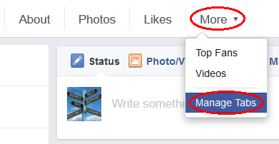 Log in to your Facebook and on the tab click on the "More" and then click on "Manage Tabs".