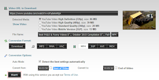 Choose the video Quality and click on "Start" or you can click on "Download" aswell, but in that case it will not convert the original YouTube video.